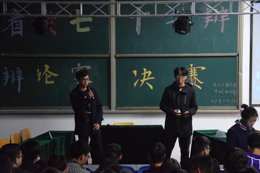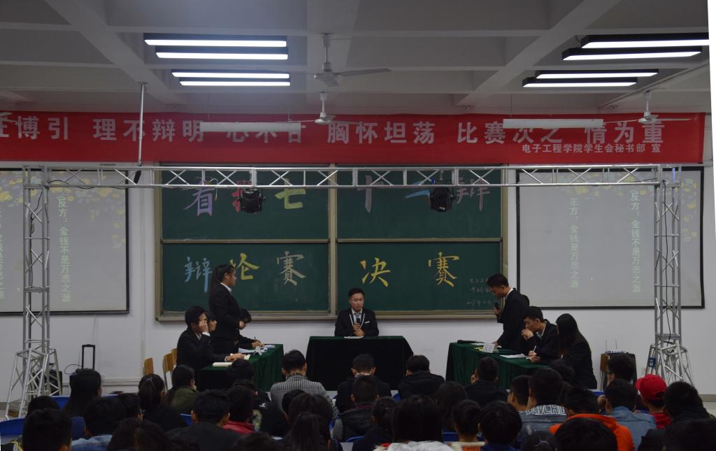 世界上最具有威力的三大武器:口才、金钱、核弹,其中以口才居首位,辩论能激发个人潜能,提高对问题的审思,更能实现跨灵感界限的沟通。11月17日晚,电子工程学院在阶梯二教室举办“看我七十二辩”新生辩论赛活动。旨在提高同学们的思辩能力、锻炼思维、增强自信、培养创新和团队精神,提高口语表达能力以及分析解决问题的能力。