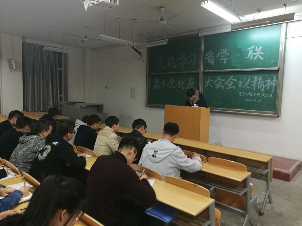 1115日晚,电子工程学院召集学生干部召开了学习贯彻陕西省学生联合会第十次代表大会会议精神会议。会议由电子工程学院团总支副书记王小乐和学生会主席陈雨萌主持,团总支学生会全体学生干部参加了本次会议。