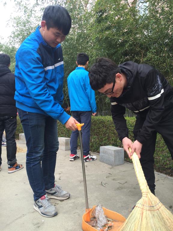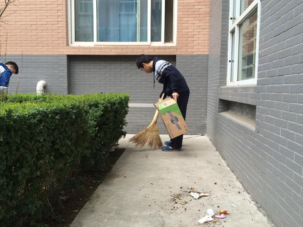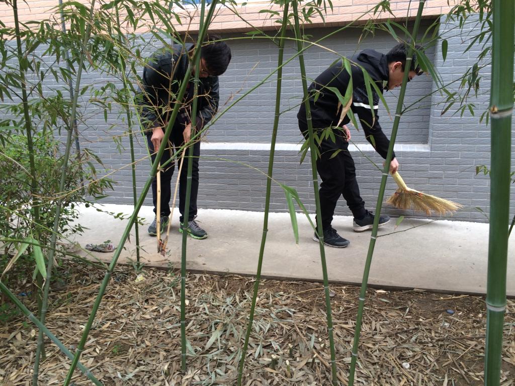 中午14点,参加活动的同学们集合完毕,生活部部长康泰源点名并统计到会情况。随后,同学们使用笤帚、簸箕、夹子等劳动工具,热火朝天的开始了紧张而有序的劳动。一部分人进行地面的清扫,另一部分人用夹子捡拾竹林及花坛中难以清扫到的垃圾。在同学们的努力下,公寓院内的各个垃圾死角都被打扫的干干净净,春日的草木刚刚吐出点点嫩芽,刚下过细雨的泥土粘在同学们的鞋子上,阳光照着一张张带着汗水却也有欣慰笑容的脸庞,也见证着他们的努力,最后,一个整洁美丽的公寓呈现在大家面前。