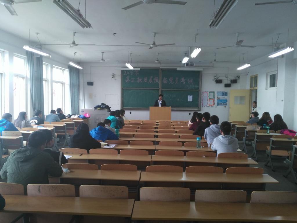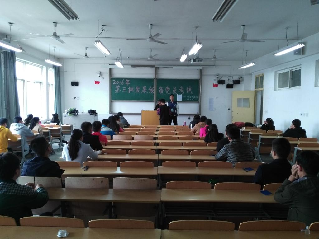 11月6日,为选拔优秀积极分子发展为预备党员,响应党中央十八届六中全会提出的“从严治党”的方针,电子工程学院学生党支部在阎教楼1336和1334教室进行了第十三期积极分子发展预备党员考试,本次考试由电子工程学院学生党支部书记孙护军老师组织开展,组织部协助监考工作的进行。