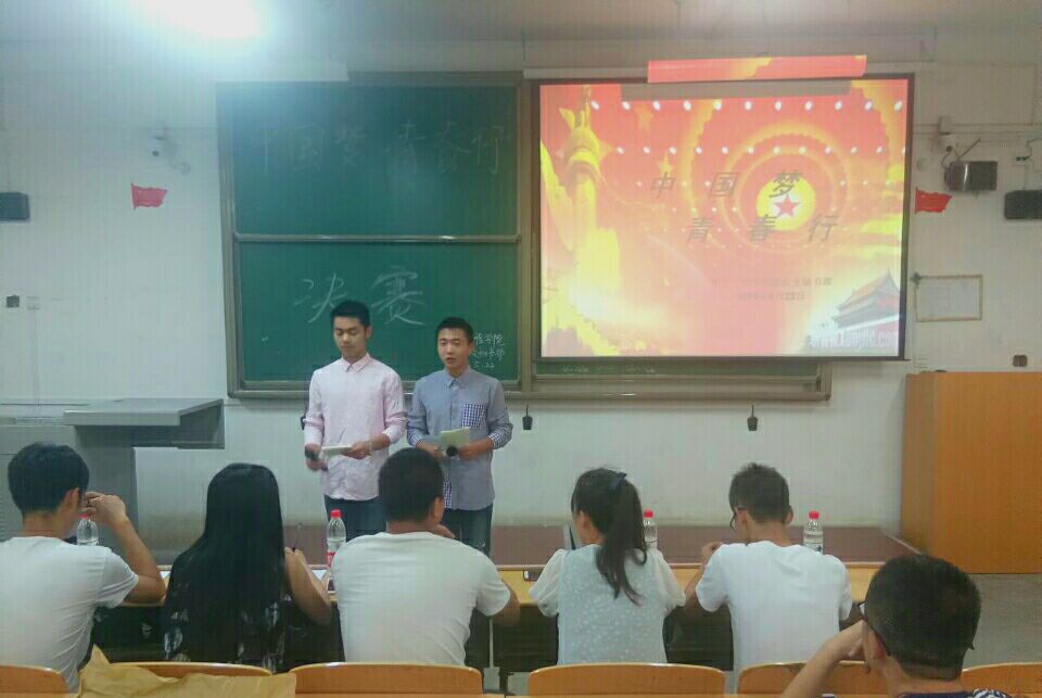 为弘扬社会主义核心价值观,增进电子工程院学生对“中国梦”的理解与认识,5月22日晚上19:20,我院团总支秘书部于阎教楼1336教室进行了以《中国梦·青春行》为主题的演讲比赛决赛。共计12人分为六组参与此次比赛。比赛诚邀了我院团总支副书记张继、徐家宏,创新创业部部长朱乐,团总支秘书部部长强瀚方,副部长余启文作为此次比赛颁奖嘉宾。此外,大一每班四名学生观众参加了整场比赛。