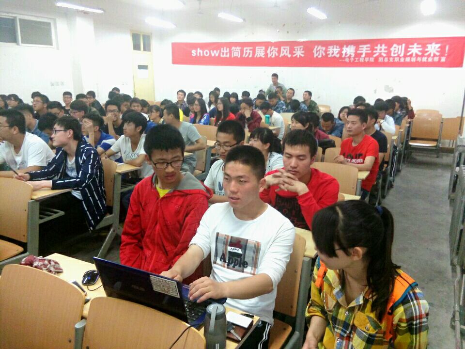 426日晚上19:00,在阎教楼1336自习室举行了由电子工程学院职业规划与就业工作部主办的电子工程学院第一届简历大赛。本次大赛邀请到了电子工程学院大三本科辅导员庄思老师,大二专科辅导员张小妹老师,大一士官班教官敬超凡老师,以及大四已经与知名公司签约的田宇、冯雄博等几位学长作为嘉宾评委。电子工程学院大一各班学生代表参加了此次大赛。