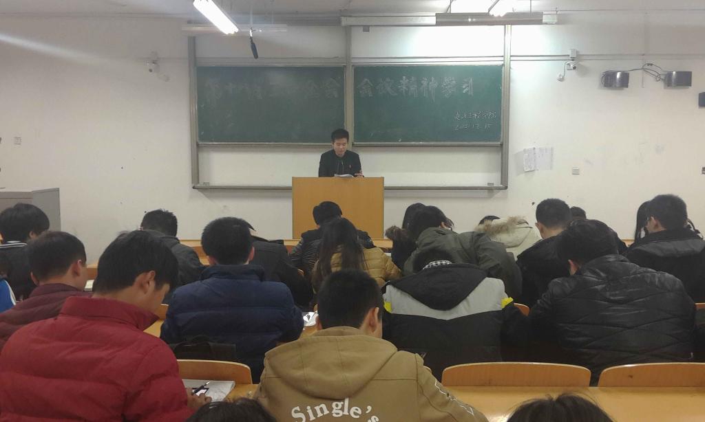 20151215日晚830,电子工程学院在阎教楼1322教室开展了关于学习“学习十八届五中全会会议精神”内容的大会。此次会议由电子工程学院团总支组织部组织并开展,张继、叶哲远等40多名预备及正式党员参加了此次会议。