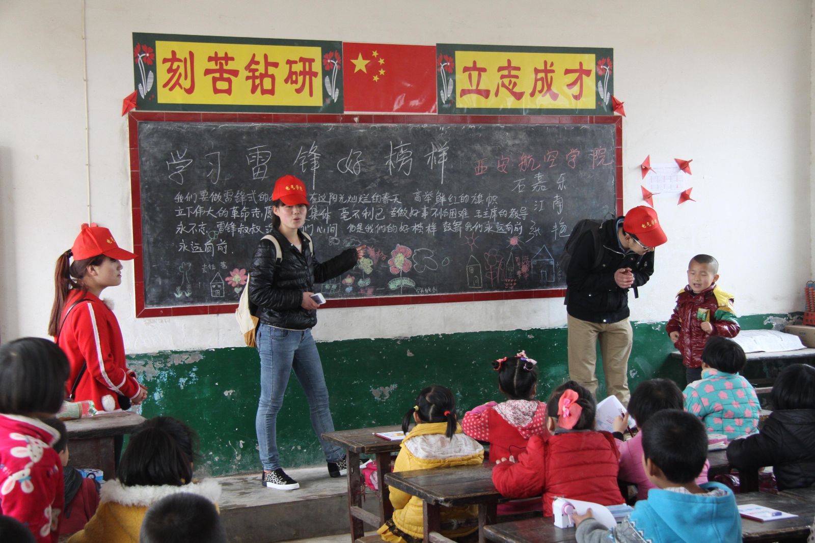3月25日上午,我院航空通信1709班志愿者,在班主任吴涛老师和班长的带领下来到了富平县的一个小山区甘井村甘井小学进行雷锋志愿者服务活动。