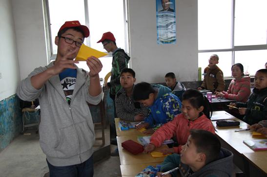 本次活动志愿者不但帮甘井小学的孩子们打扫了他们的教室卫生,同时还深入到班级中,与孩子们进行雷锋宣传与互动,为同学们讲解雷锋事迹,传递"爱心"与"奉献"精神,宣传爱国主义文化,弘扬"中国梦"的思想品质。志愿者们还为孩子们展示了航模特技飞行表演。志愿者们手中遥控这上下翻飞的各色航模,在蓝天下为孩子们谱写出对他们美好未来的深深祝福。