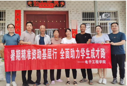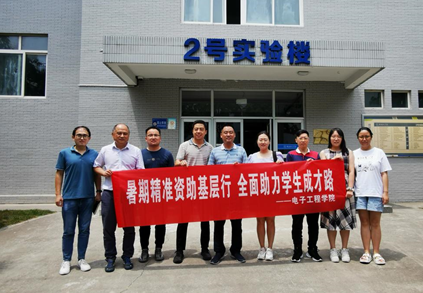 为进一步贯彻落实国家贫困生资助政策,按照学校《关于做好2023年暑期精准资助工作》的通知要求,2023年7月12日至13日,电子工程学院由党总支副书记郝杰、学生管理科科长龙卓群分别带队,辅导员组成,对陕西省渭南市4名家庭经济特殊困难学生进行了家庭走访。