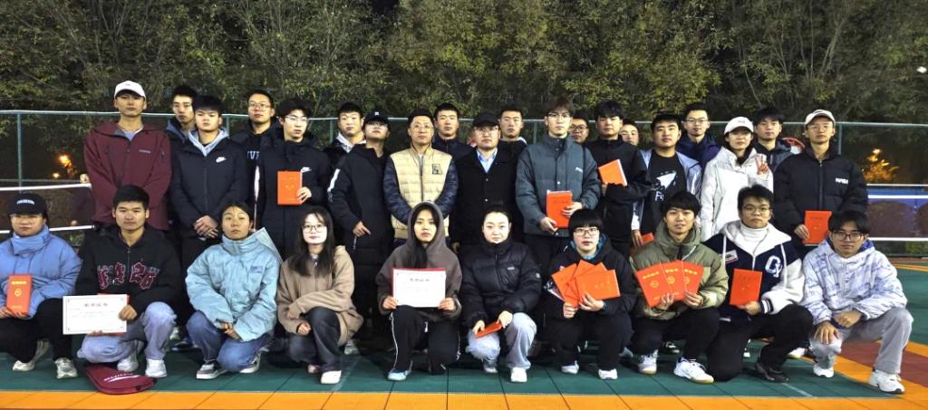 他们用激情与汗水,为电子工程学院全体师生呈现了一场精彩绝伦的羽毛球盛宴。决赛过程中,选手们展现出了极高的竞技水平和顽强的拼搏精神。每一场比赛都充满了悬念和竞争,无论是单打还是双打,同学们都全力以赴,团结一致。最后,辅导员焦登宁老师为全体一等奖同学颁奖,许梁老师为二等奖和三等奖同学颁奖。