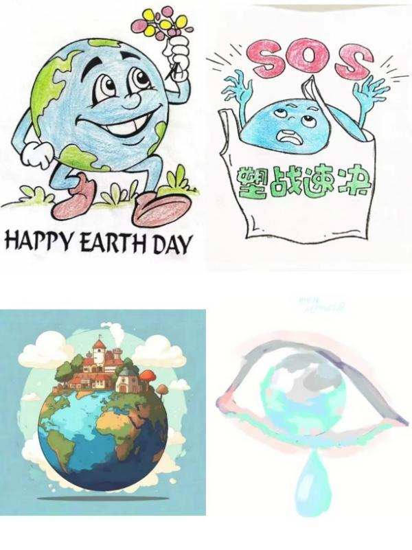 本次活动持续一周时间,活动中同学们查阅相关资料通过创意简笔画和创意手工作品等富有创意和内涵的作品来表达保护环境的意识。以下是本次活动优秀作品展示: