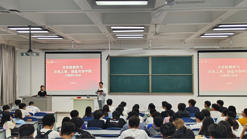 学院团总支书记许梁老师主要围绕深入贯彻习近平新时代中国特色社会主义思想,贯彻落实习近平总书记关于青年工作的重要思想和关于教育的重要论述,深化团员和青年主题教育,结合深入学习宣传贯彻习近平总书记五四青年节对全国广大青年寄语精神,围绕党的创新理论最新成果、党领导下的青年运动史、新时代党和国家事业取得的历史性成就和发生的历史性变革、庆祝中华人民共和国成立 75 周年、红色基因传承、总体国家安全观、促进大学生等内容,动员学院的团员和团干部用“青言青语”讲好党的创新理论,引导同学们要不断增强永远跟党走的信念信心,自觉做习近平新时代中国特色社会主义思想的坚定信仰者和忠实实践者,勇于担当作为、积极投身国家建设和社会发展。
