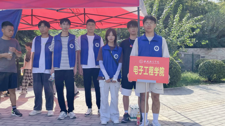 8月31日。新生们带着行囊,满怀憧憬地来校报到,迎接他们的第一缕微笑便来自电院的迎新志愿者。迎新志愿者们身穿蓝色马甲,手持醒目的引导牌,指引着新生们进行报到。无论是解答疑问、指引路线,还是协助搬运行李,志愿者们都以最饱满的热情和最细致的服务,让新生们的每一步都踏得坚定而温暖。