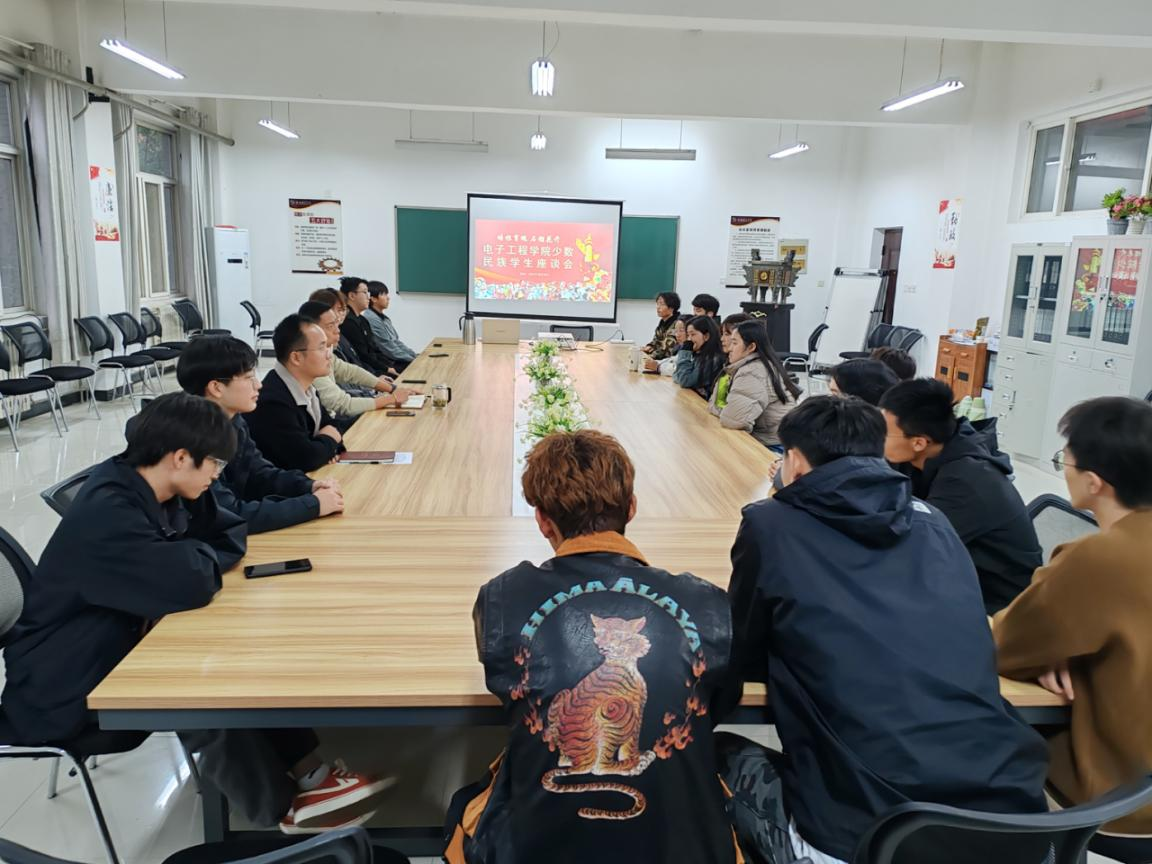为深入学习贯彻习近平总书记关于加强和改进民族工作的重要思想,进一步了解少数民族学生思想动态,推进少数民族学生工作,深化民族团结进步教育,铸牢中华民族共同体意识,促进各族学生交往交流交融,电子工程学院于10月24日下午在阎良校区召开学院少数民族学生代表座谈会。座谈会主题为“培根育魂,石榴花开”,学院党总支副书记郝杰,辅导员焦登宁与学院20多名少数民族学生围绕主题展开交流。