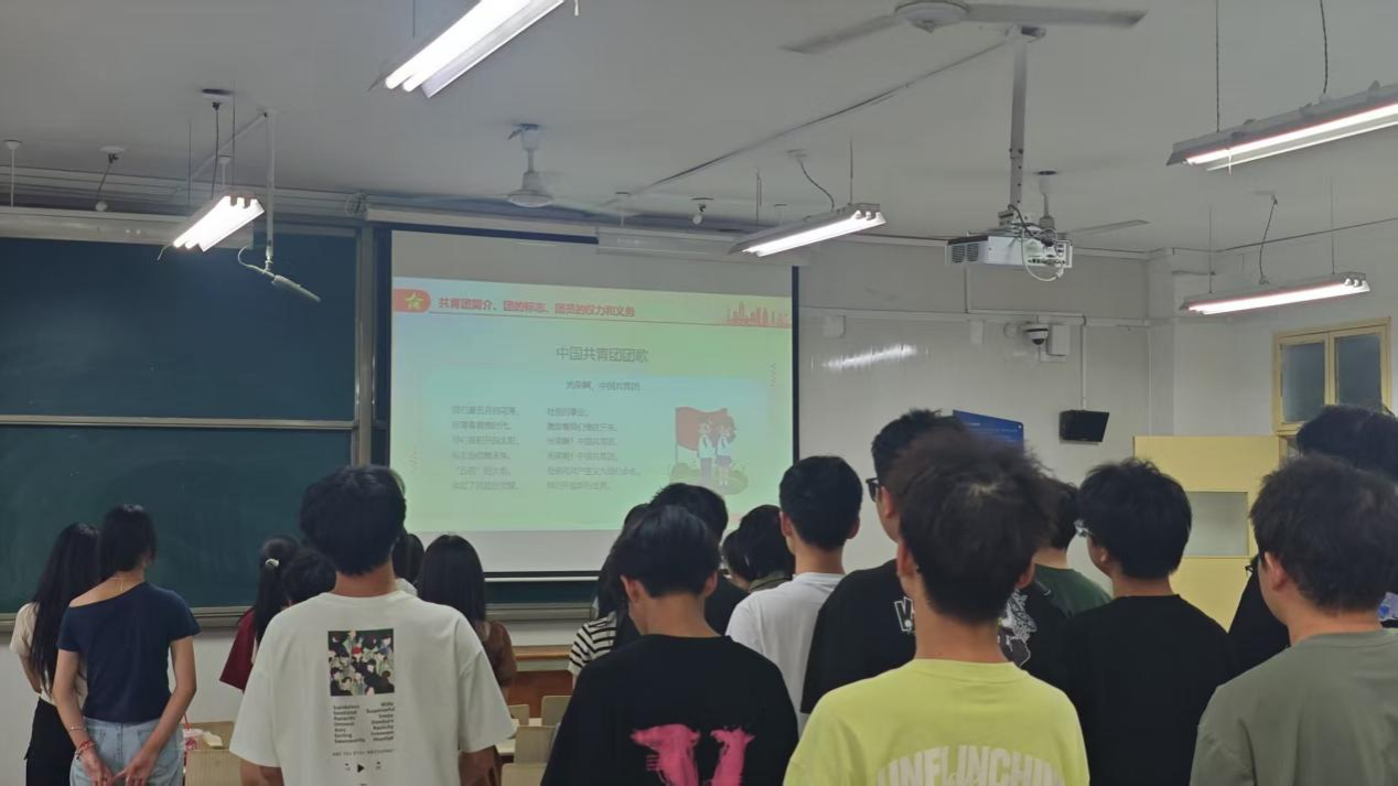 介绍尾声,陈瑞辰饱含深情地说:“加入共青团,是青春的新起点。希望大家牢记团的章程,履行团员义务,在今后的日子里,用实际行动为团旗增光添彩!”台下的新团员们认真聆听,眼中满是对共青团的向往与加入组织的自豪。