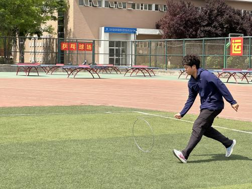 30米赛道上,队员们操控铁环完成折返跑,铁环倒地需原地重起。选手们专注于平衡控制,有人出发即“翻车”仍坚持完成赛程,有人以稳定步伐实现零失误接力,团队呐喊声贯穿全程。