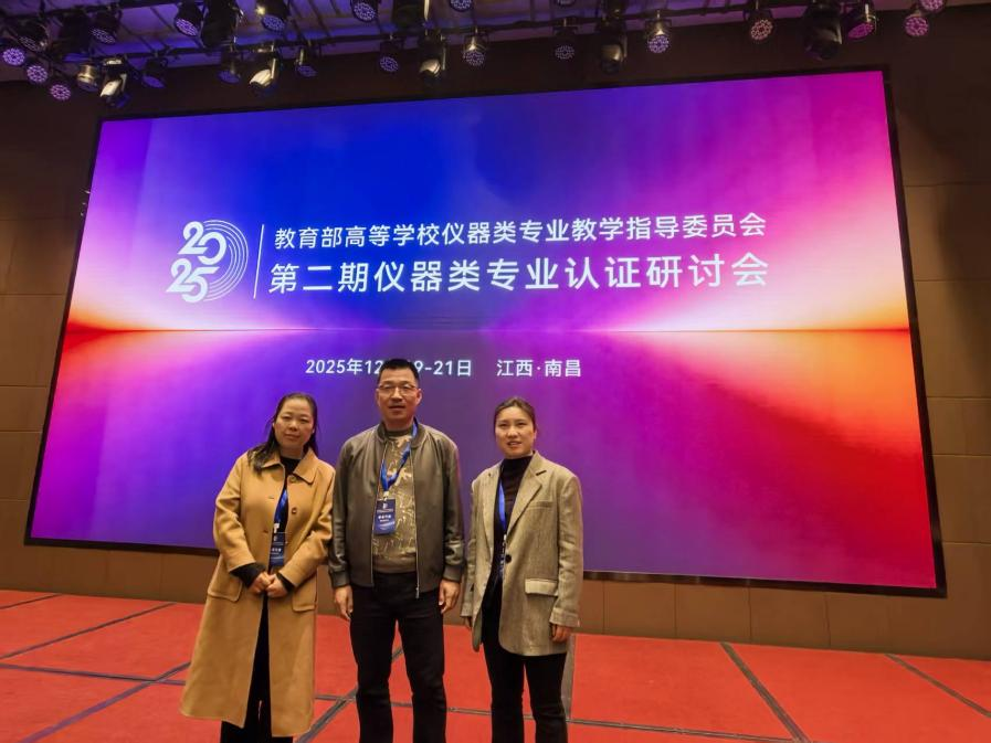 为进一步推动专业建设与教学改革,适配工程教育发展新形势,2025年12月19日至21日,我校电子工程学院副院长肖海峰、测控技术与仪器专业负责人逯九利、教研室主任何红一行三人赴南昌参加了教育部高等学校仪器类专业教学指导委员会举办的“2025年第二期仪器类专业认证工作研讨会”。