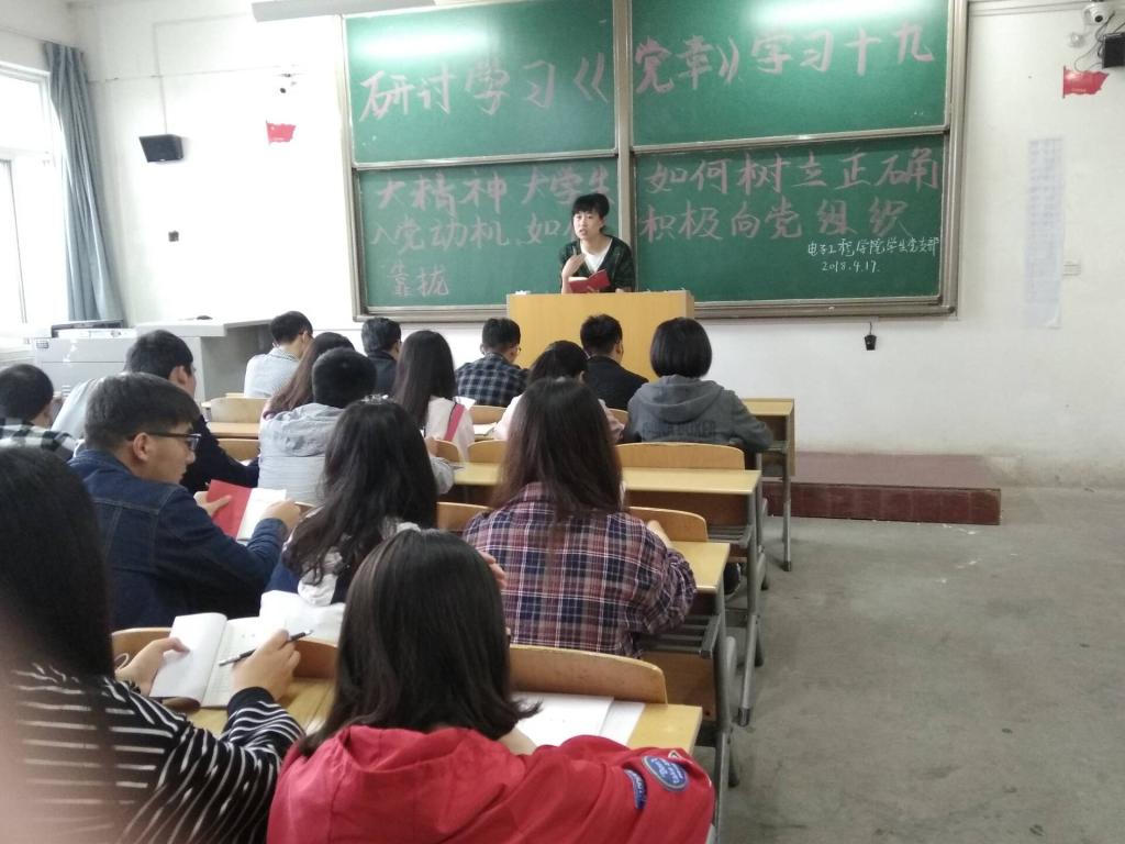 4月17日晚,电子工程学院学生党支部在阎教1336召开了关于学习《党章》,学习十九大精神,以及端正入党动机的党课讨论会。电子工程学院19期积极分子全体参加讨论会,本次会议由大一辅导员马晨主持。