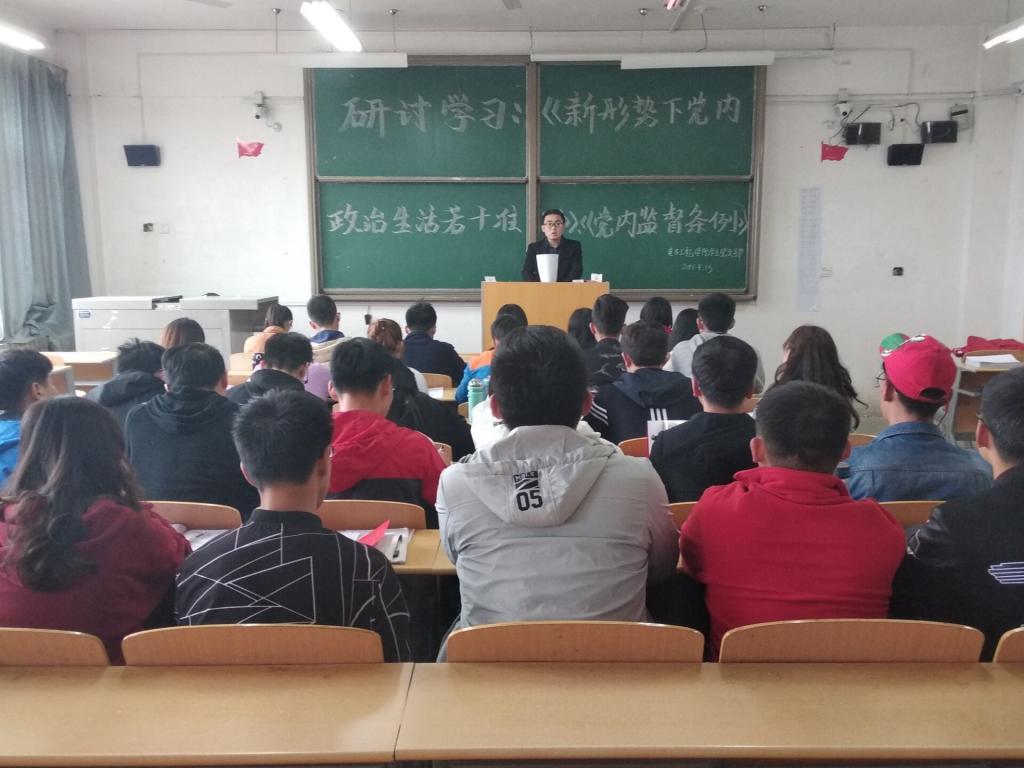413日下午四点,电子工程学院学生党支部在阎教1336召开以《新形势下党内政治生活若干准则》、《党内监督条例》为主题的党课研讨学习会,赵嘉帅老师及第十七期发展对象参与本次研讨学习会,本次会议由学生党员张兆丰主持。