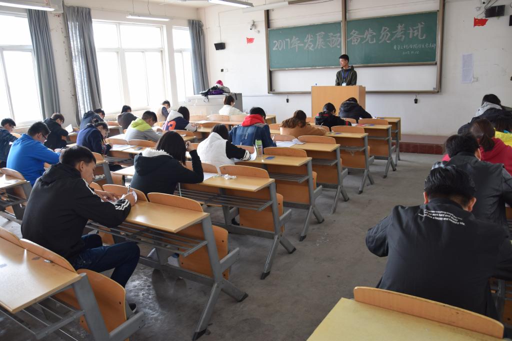 11月12日下午两点,电子工程学院组织第十五期及十六期入党积极分子于阎教楼1334和1336教室进行积极分子发展预备党员考试。本次考试由学院组织部担任监考。
