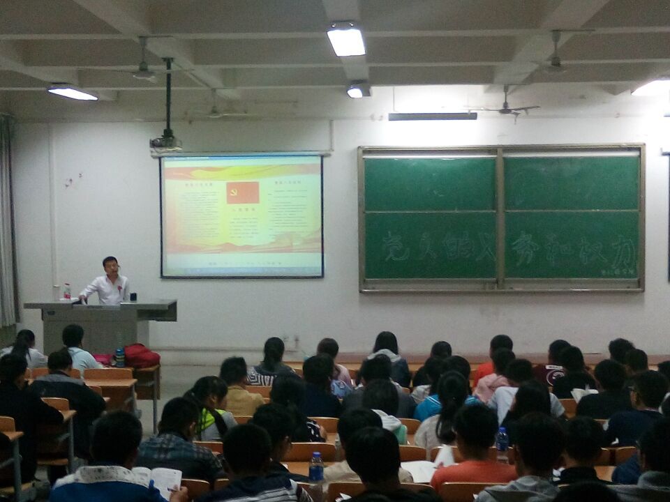 一开始,老师带领同学们观看了体现爱国主义精神的影片《建党伟业》,该影片让我们认识到了现在的美好生活是来之不易,革命先辈流血牺牲换来的幸福生活我们应当珍惜,更激起了同学们的爱国主义精神和入党志愿。影片观看完之后,葛昊老师以《党员的义务与权力》为题进行讲述,让我们明白了党员所需要做的是什么、所要履行的义务是什么;史珊珊老师以《党的奋斗目标和现阶段的任务》为题,为我们阐述了现阶段共产党的目标与任务。作为新一代青年,要起一个模范带头的作用,做一个爱国爱党的青年。课堂中同学们积极和老师互动,充分显示了同学们的入党积极性,昭示着我党的新鲜活力和生命力。