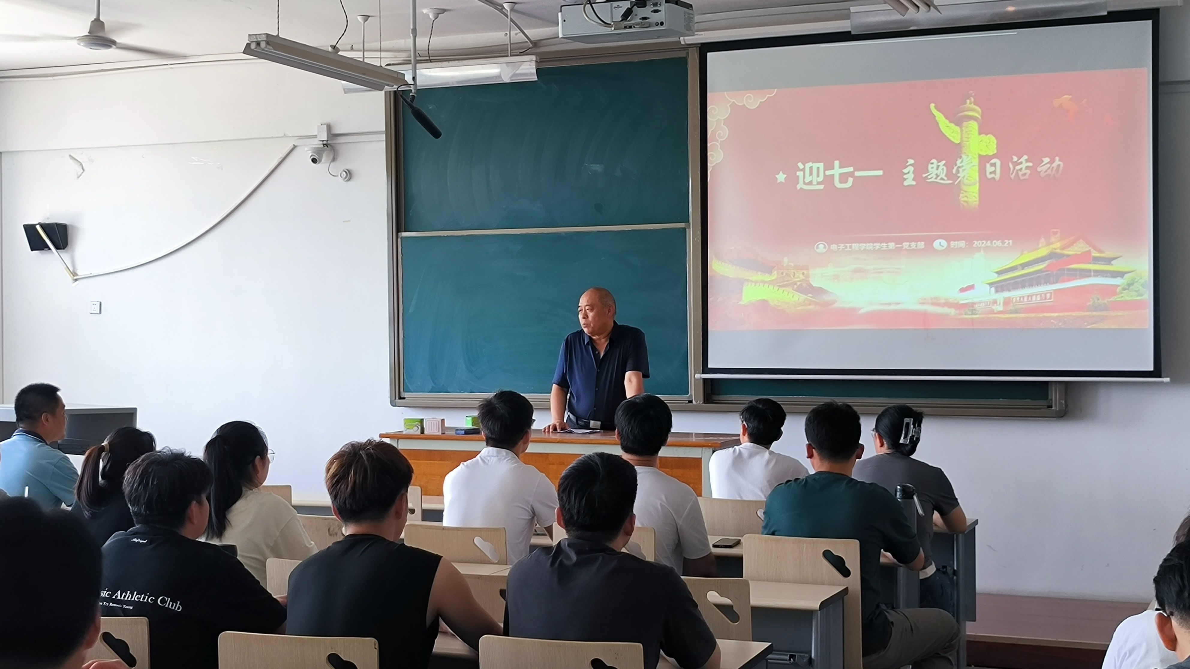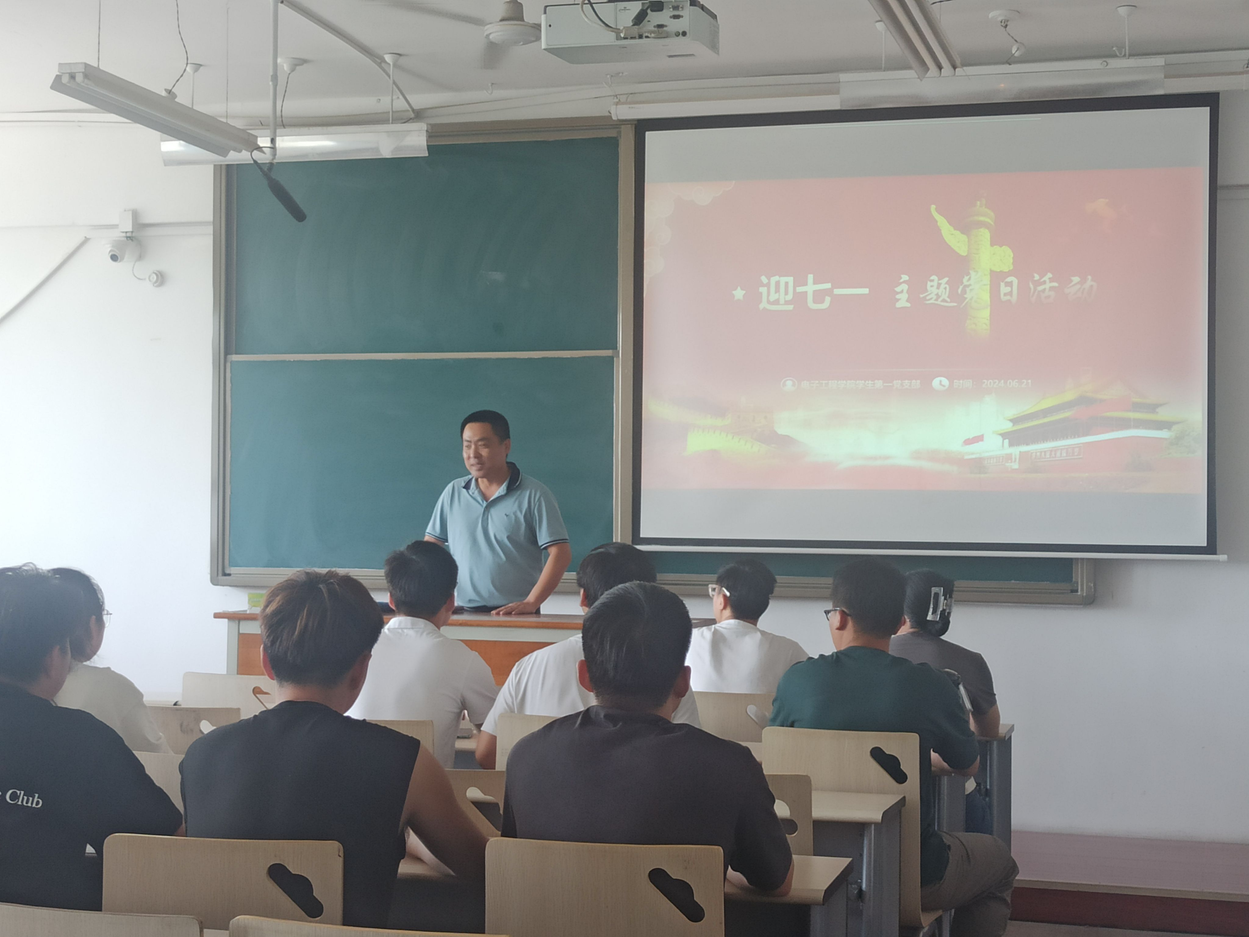 为庆祝中国共产党建党103周年,6月21日,电子工程学院学生第一党支部举办“迎七一主题党日活动”,全体支部党员集中观看纪录片《这就是中国》。活动邀请李季副校长旁听指导,学院党总支书记李中参会。会议由张笛主持。
