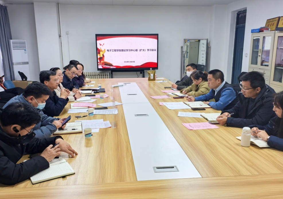 12月30日,电子工程学院在莲湖校区教学主楼0711会议室召开党总支理论学习中心组(扩大)会议,党委委员、副校长宋文学、党委委员、党委统战部部长、人事处处长许文丹到会巡学指导,纪委委员、保卫处处长张永成到会督学,发展规划与学科建设处处长杨少斌做专题辅导报告,学院理论中心组成员、各专业负责人、教研室主任及电子信息专业全体教师参加学习。会议由学院党总支书记李中主持。