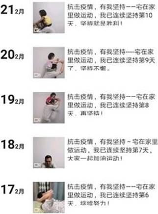 为了响应学校工会“抗击疫情,有我坚持——宅在家里做运动”十天打卡活动,电子工程学院全院教职工纷纷积极参与到活动当中,继续在家“动起来”。