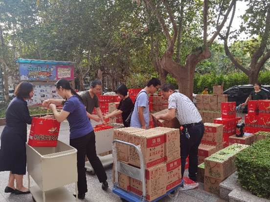 9月16日,我校2020年教职工教师节、中秋节、国庆节福利品发放工作在沣惠校区进行。全校教职工前来领取节日福利品,共话温馨,共庆佳节。