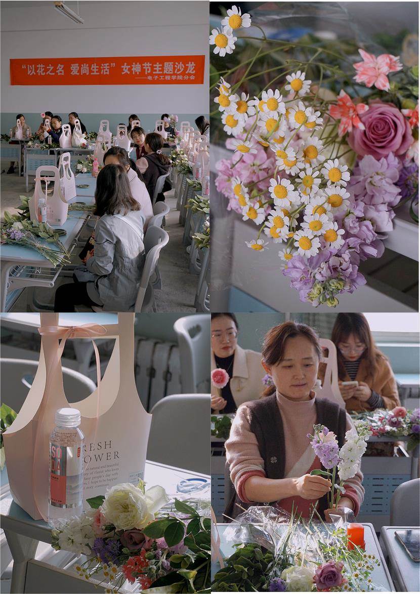 为庆祝第111个“三八”国际劳动妇女节,电子工程学院组织开展了以“以花之名,爱尚生活”为主题的庆祝活动。3月5日下午在沣惠校区主教学楼,举办了插花庆祝活动。在忙碌的教学科研工作之余,感受插花艺术的魅力,是对身心的放松,也是精神上的享受。