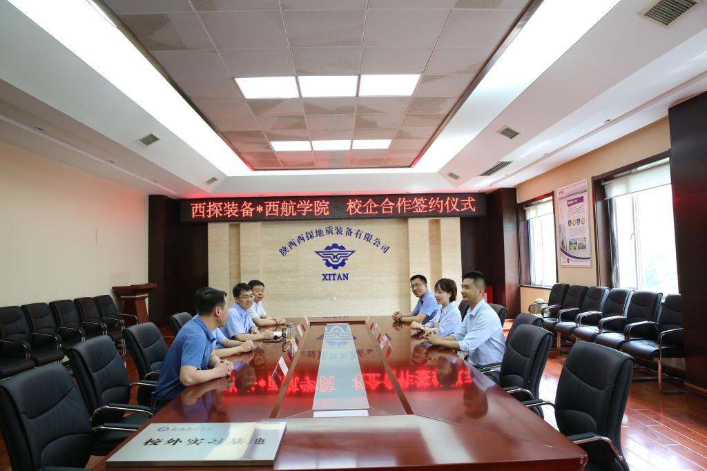 2021年6月3日,我校电子工程学院院长毕杨、副院长肖海峰等一行三人应邀前往陕西西探地质装备有限公司(后文简称西探装备)参加校企合作签约仪式。西探装备党委书记、执行董事、总经理罗帅训,党委副书记、副总经理、工会主席秦鹏、总工程师董朝辉、生产副总贺雪峰等领导热情欢迎我院领导的到访。