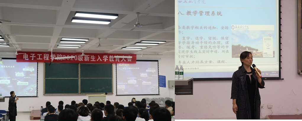 9月24日,电子工程学院开展2020级新生入学教育大会。院长杨勇、党总支书记侯睿,2020级新生449名学生参加了本次集中教育大会。