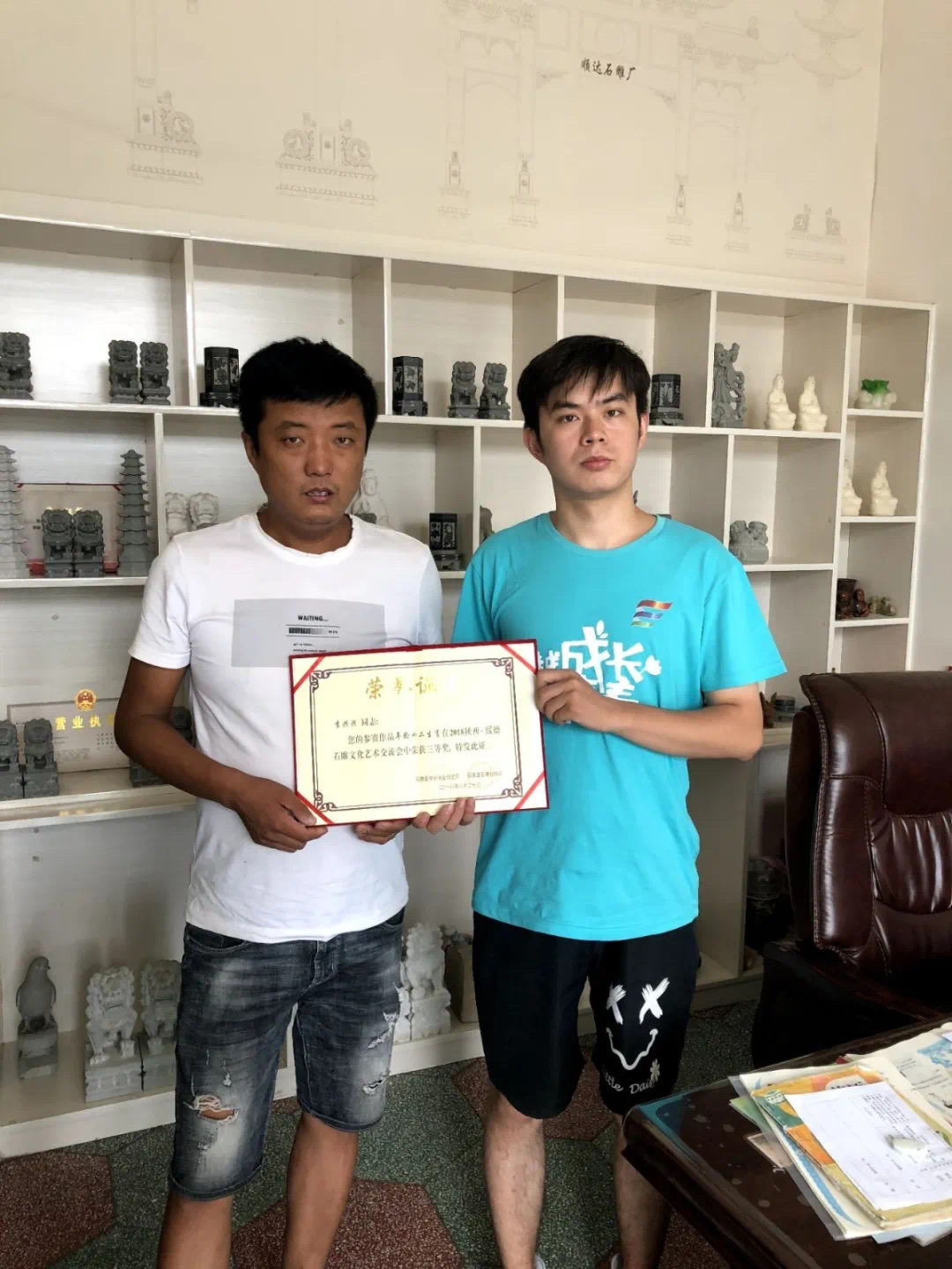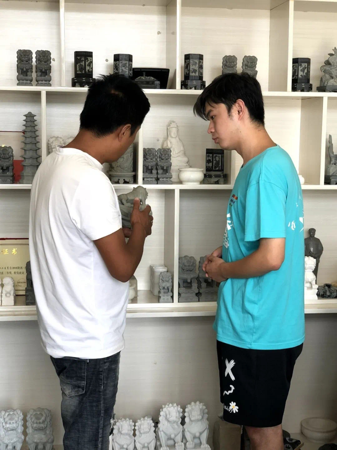 李师傅说:“绥德石雕是“师徒式传承”,我从小就看村里的工匠做石狮子,对石雕产生了极大的兴趣,不知不觉拿起了刻刀,我就成了一名石雕徒弟,从入门到现在已经将近20年,我的生活已经和石狮子结下了不解之缘”。他表示,这门手工艺术已经融入到了自己的骨血里。经过岁月的浸淫,石狮子在这位绥德汉手上演变出丰富多彩的造型,他的作品也获得绥德县石狮子雕刻比赛荣誉证书。通过交谈了解到,李师傅家以前也比较贫穷,但是现在他靠着自己的石雕手艺以及国家相应政策的支持,已经让自己的家庭脱掉了贫困的帽子,现在年收入将近20万元。李师傅也希望更多的年轻人能够继承并且发扬这门传统手艺,使这门古老的手艺继续传承并且发扬光大。