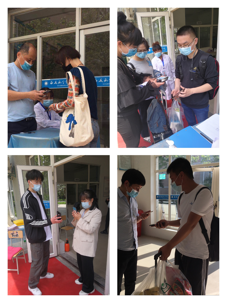 此次返校,通过“我在校园”平台提前向学生发布了返校通知,学生进行返校申请,班主任以学生14天健康打卡记录、健康防疫码(或健康证明)、返校前所在地风险等级等为主要观测内容进行返校审核,审核通过的学生才允许返校。及时向学生发布学校返校方案,提醒返校途中注意事项,讲解防疫知识,要求学生每天坚持健康打卡,熟悉返校流程,填写返程交通工具,以便掌握学生返校方式、出发、到校时间,全程跟踪学生返校全过程,确保学生安全返校。学生进入返校通道,经查验返校验证码,智能测温系统测温,扫描西安健康码进入校区。经登记个人信息,对行李箱、个人进行消毒,扫描返校二维码进入宿舍楼。此次返校有两名湖北籍学生,由学校统一接站,进入集中隔离点进行14天的隔离观察。