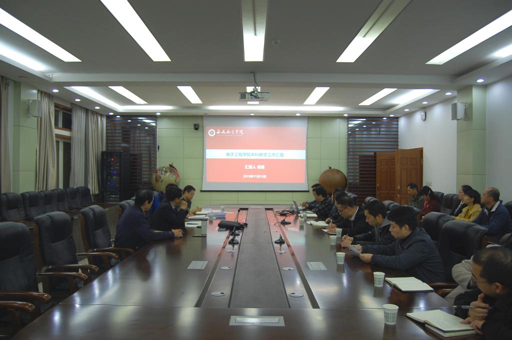 11月13日,校长曹庆年、副校长宋文学,教务处处长米国际、评建办主任吴晓葵一行四人对电子工程学院本科教学合格评估准备工作进行调研。电子工程学院院长杨勇、党总支书记侯睿、副院长毕杨、院长助理肖海峰以及各科室负责人、骨干教师参加调研会。