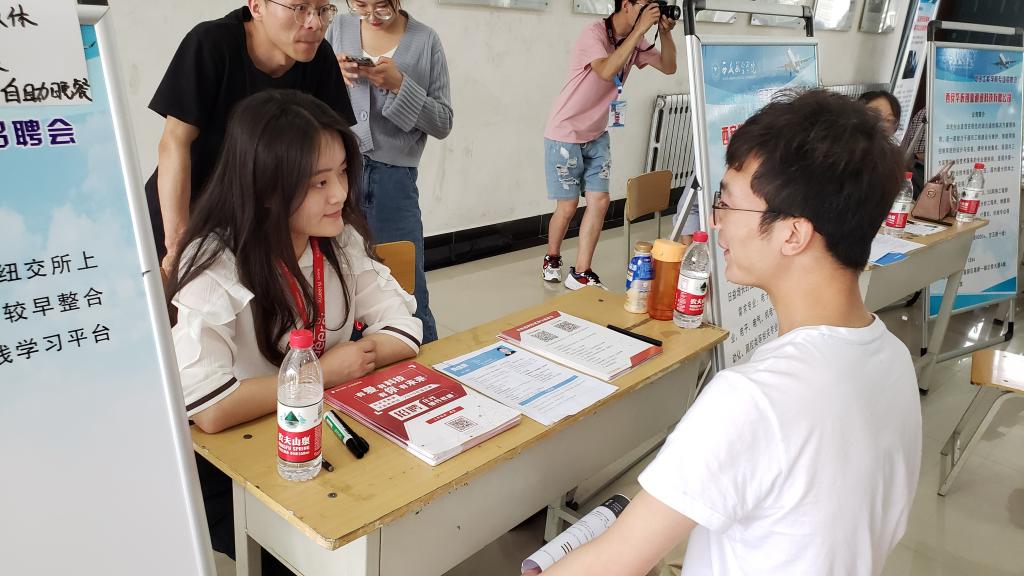 5月16日,电子工程学院在阎良校区举行2019年专场招聘会,西安华信铁路技术有限公司、西北商贸、学而思网校等14家用人单位,提供就业岗位百余个,涉及电子信息、教育、房地产、社会工作等各领域。电子工程学院院长杨勇、党总支书记侯睿、学生管理科科长龙卓群来到招聘会现场,与用人单位交流,为毕业生答疑解惑,提供指导。