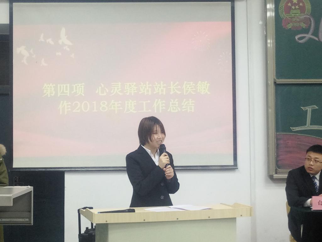 随着国歌的奏响,本次表彰大会正式开始。首先,阴宇泽与常锐对本学期的团学工作做了总结性发言,肯定本学期的各项团学工作,对在场全体同学表示感谢和鼓励,同时也指出了一些问题和不足,希望各部门成员在接下来的工作中寻找自身工作的不足并有所改进。紧接着,侯敏叙述了心灵驿站本学年的工作成绩,对部门一学年的工作进行了分析总结,并表示在新的一年中会更加努力工作,为学院工作做出应有的贡献。而后,白泽在会上向全体师生反映了本学年配合各部门工作所取得的成果,在接下来的工作中将完善对各部门的监管制度,意在更好的为学生服务。焦鑫甜总结了易班工作所取得的成就,表示易班工作在未来将越来越好。