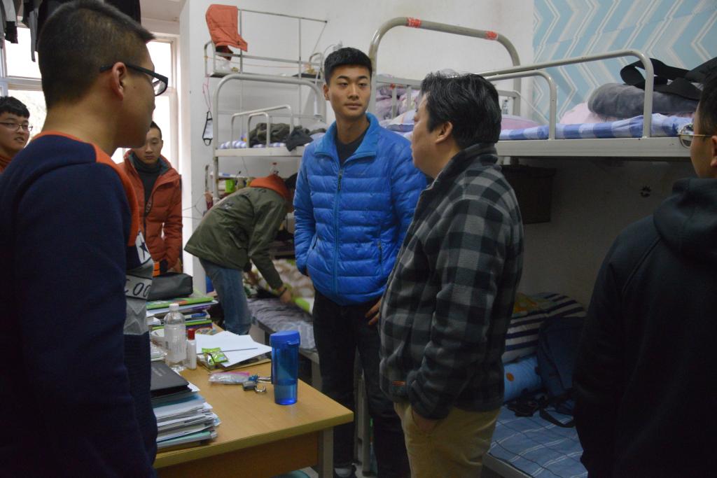随后,杨勇一行人来到达五号公寓,对于大部分学生宿舍的卫生以及安全情况进行检查。在检查的同时,杨勇了解到学生近来的学习以及住宿情况,孙护军和侯睿对于同学们宿舍供暖情况表现出特别关注。杨勇指出,学生和学生寝室的风貌反映了学院的风貌,学生宿舍作为学生的重要生活场所,不仅要加强宿舍条件等硬环境的打造,更要引导学生素养的习得养成。