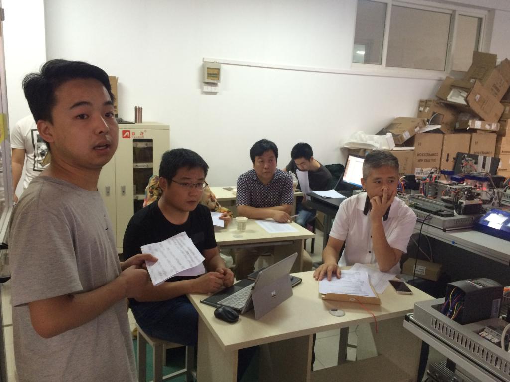 现场答辩是今年毕业论文答辩的一大亮点,杨勇教授指导的毕业设计小组自主搭建了一套名为西航XH-239C型小型自动化生产线,能实现生产线的送料、搬运、加工、直线运输和储存。答辩现场井然有序,学生自信陈述,熟练操作演示设备,保证功能实现,评委教师专注聆听,细细观察,犀利提问,针对设计中存在的不足提出进一步的修改意见。自主化的设计要求规避了学生一味在网上下载或相互抄袭的弊端,保证了毕业设计的质量,充分展现了应用型和创新型人才的培养理念。