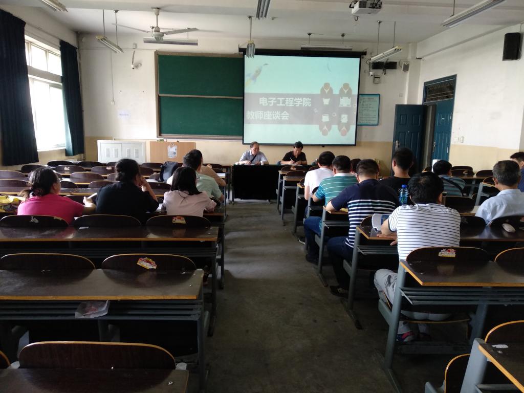 5月18日,电子工程学院在沣惠校区0814教室召开了期中教学检查教师座谈会,院长杨勇、学校督导专家孟虎出席本次会议。各教研室主任、教学秘书及学院20名教师代表参加会议。会议由杨勇主持。