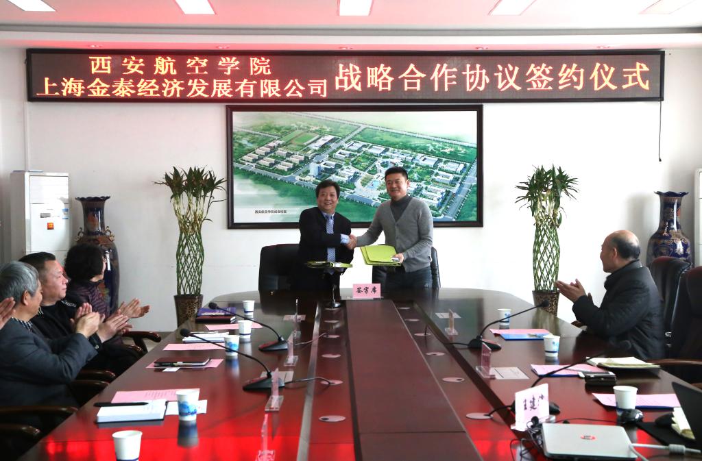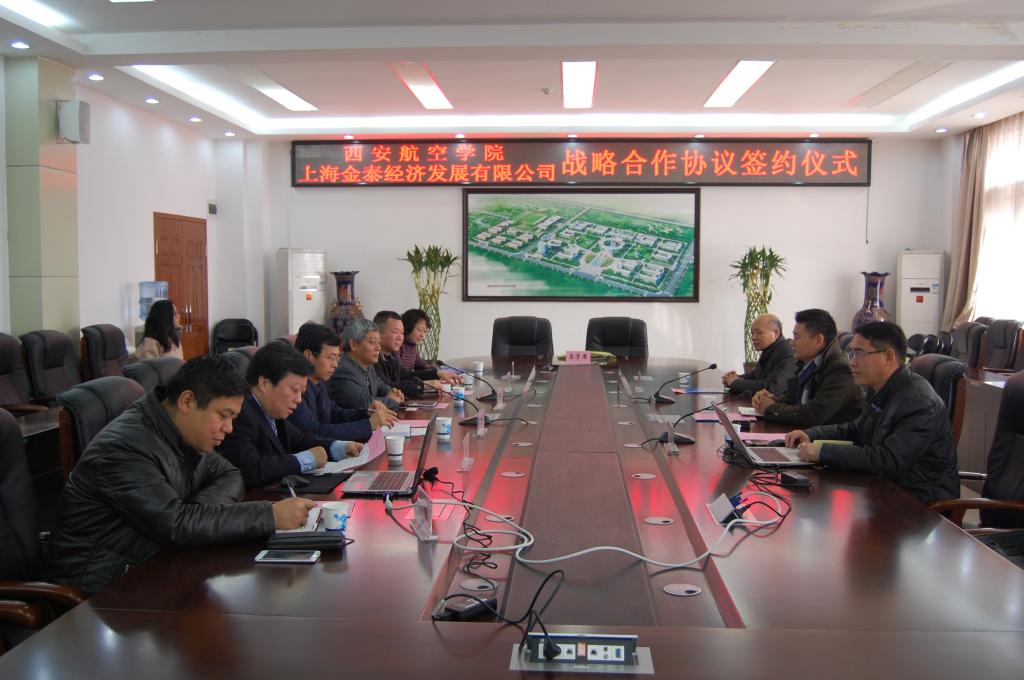 2月27日上午,Beat365官方网站--上海金泰经济发展有限公司战略合作签约仪式在我校沣惠校区举行。校领导张同怀、宋文学,科技处处长蔡向朝、副处长赵银燕、电子工程学院院长杨勇、材料工程学院副院长丁旭,上海金泰经济发展有限公司总经理陈宏宾,副总经理李文广、任建斌出席签约仪式。签约仪式由杨勇主持。