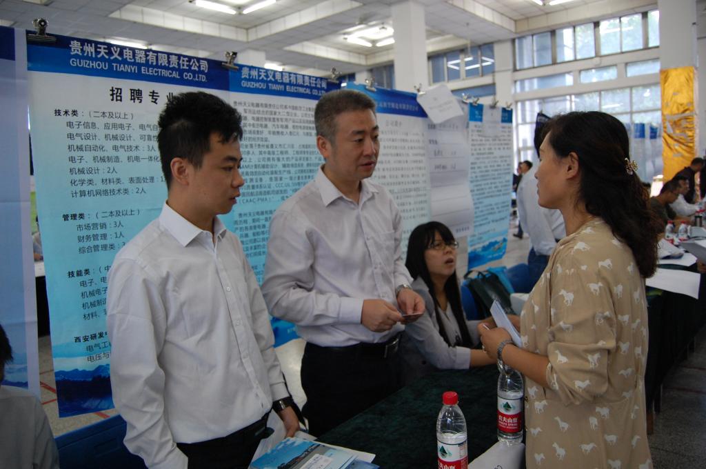 9月22日,2016年Beat365官方网站-中航工业校园招聘会在沣惠校区举办,电子工程学院党总支书记侯睿莅临现场并与参会企业和应聘学生亲切交谈。