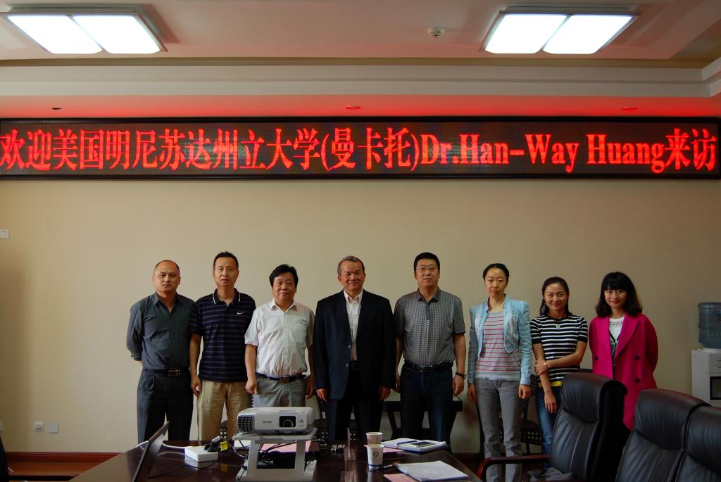 5月9日上午,美国明尼苏达州立大学(曼卡托)Han-Way Huang教授访问我校。我校国际合作与交流处处长蔡应昌、电子工程学院院长杨勇、副院长张军、国家级教学名师刘雨棣教授等与来宾座谈。会议由蔡应昌主持。