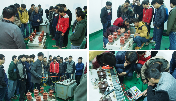 在接下来的实训环节,由企业方工程师带领,同学们观摩并分组实操了绝缘电阻、直阻、回路电阻和变比的测量实验,并于第一时间撰写实习报告,讨论总结。