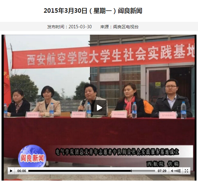 我院为期一个月以“献青春”为主题的学习雷锋志愿者服务月即将落下帷幕,在这一个月里,我院青年响应校党委、校团委、团总支号召,积极开展格式各样的“学雷锋、树新风、促学风”主题实践活动。用自己的行动持续宣扬正能量,用志愿者精神向有需要帮助的人士奉献爱心,使当代大学生进一步树立信仰,培养高尚品德。昨日,阎良电视台的晚间新闻节目中也正面积极的报道了我院“电气学院团总支阎良社会实践基地成立”活动。