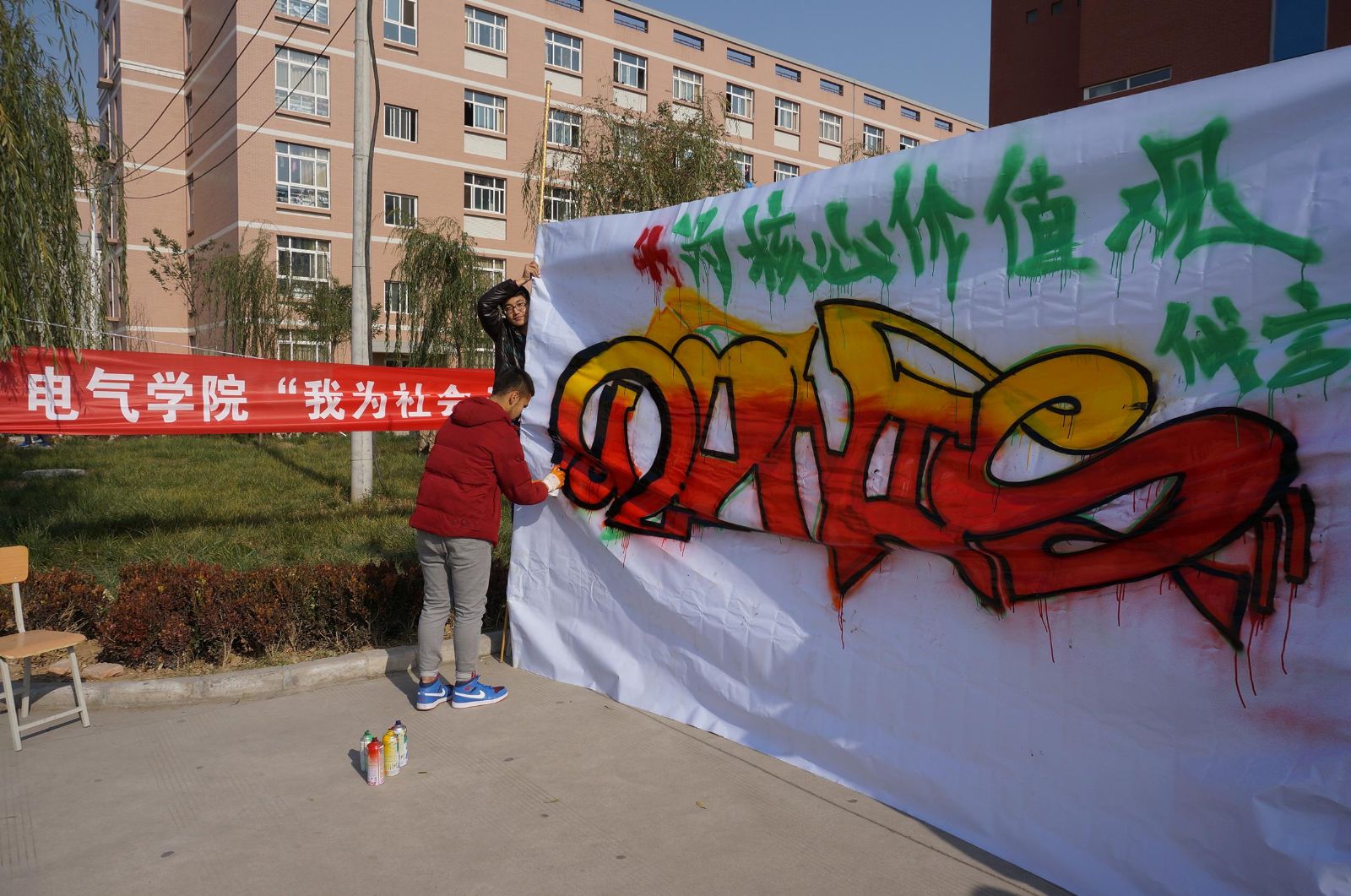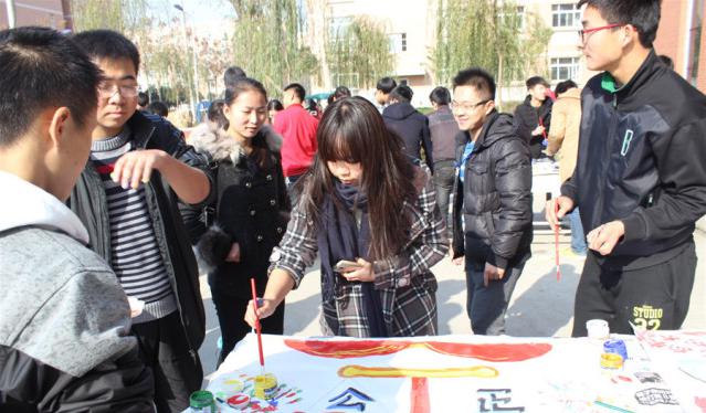 由我院团总支主办,我院团总支秘书部和学生会秘书部承办,院团总支宣传部和学生会宣传部、青协中队协办的“我为社会主义核心价值观代言”涂鸦大赛于12月2日中午12点在饭堂十字隆重开赛。本次活动是我院团总支为积极响应校团委号召,更好的弘扬社会主义核心价值观,让社会主义核心价值观精神发扬光大,而举行的为期20天的“我为社会主义核心价值观代言”系列活动中最重要的的一项活动。
