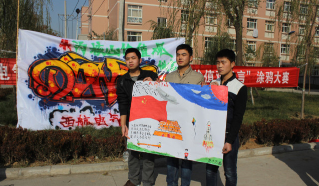开赛前由校团委赵琳老师发言,阐述了社会主义核心价值观的内容及我们应该汲取的精华,同时宣布比赛开始。20组参赛选手在白纸上认真的勾画着自己心中的涂鸦,以富强民主为横、文明和谐为竖、自由平等为撇,公正法治为捺、爱国敬业为点、诚信友善为线,每一笔都表达着自己对社会主义核心价值观的认识与见解。接着就是比赛中的知识竞答小游戏,当场观众积极回答社会主义核心价值观的有关知识赢取奖励,掌声连连,将比赛现场气氛推向了高潮。最后,所有选手涂鸦完毕,并每组参赛选手在主题涂鸦墙下和自己的作品合影,为自己的核心价值观体现代言。本次活动同时也吸引到阎良区委宣传部、话说阎良、阎良百姓网等社会媒体对本次活动的关注与报道,截至报道时,网络报道阅读量合计已超12000多次,达到了很好的宣传效果。本次涂鸦大赛第一部分首战告捷。