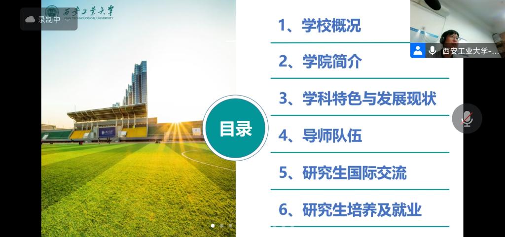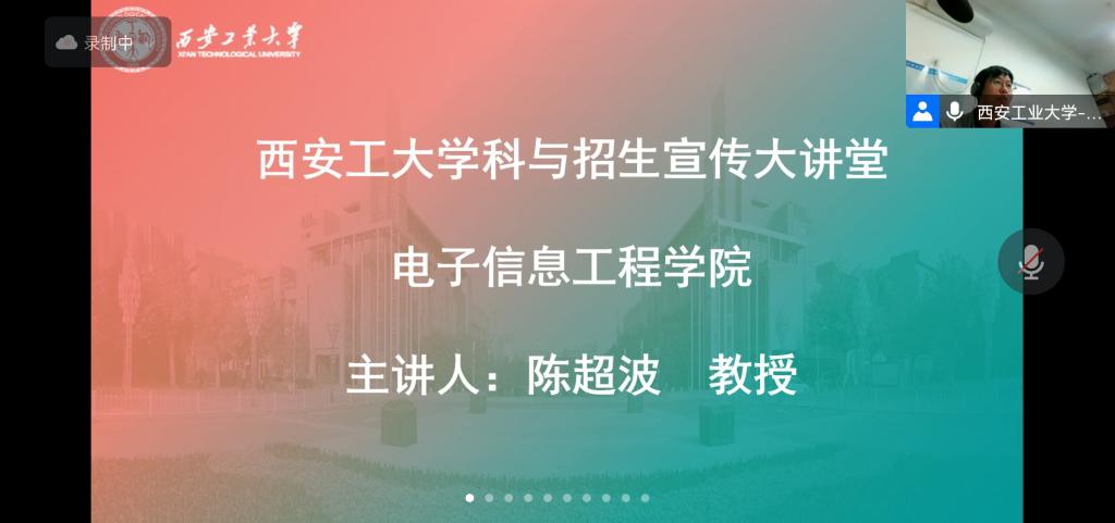9月21日,电子工程学院组织举办了西安工业大学研究生招生宣讲会,由于疫情防控的原因,本次宣讲会采取线上的形式举行,会议由电子工程学院院长毕杨主持,主讲人为西安工业大学电子信息工程学院院长陈超波,我院大三大四有考研意向的学生参加了此次宣讲会。