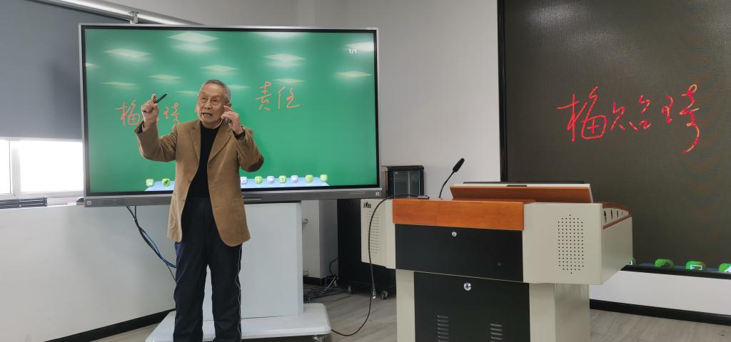 汉泽西教授利用传统的板书,指出教师的责任就是培养合格的社会主义接班人,在教育学生时要传道授业解惑,并且做到四个回归:回归常识、回归本分、回归初心、回归梦想,把人才培养的质量和效果作为检验一切工作的根本标准。他引用梅贻琦“所谓大学者,非谓有大楼之谓也,有大师之谓也”指出,一个大学之所以成为大学,并不在于它有多少幢大楼,而在于它有多少名大师,教师承担着最庄严、最神圣的使命。汉教授结合几十载丰富的人生经历指出,我们要教会大学生学会三件事:懂政治、会学习、爱生活,这样才能很好的完成学生到社会人的转换。他说,培养科技创新人才要有好的导师,师生之间要有面对面共同研讨的过程,这种过程是网络不能取代的。最后,汉教授送给在场的老师们一句话:生活不是舞蹈,不能走退步,希望老师们能够做“明师”。