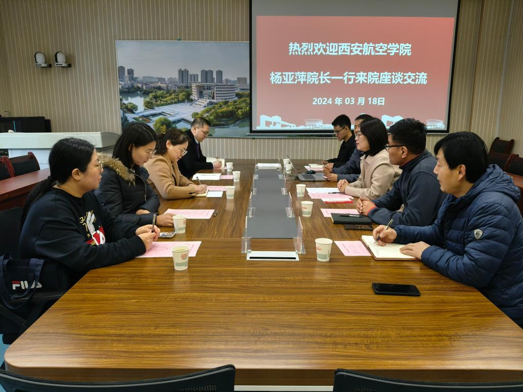 座谈会上,吕文华首先对杨亚萍一行表示了欢迎,分别从电子信息与人工智能学院的发展历程、学科建设、师资队伍、科技创新成果、现代产业学院建设及学生培养等方面介绍了学院的基本情况。杨亚萍介绍了电子工程学院的学科专业建设、师资队伍、校企合作、学生培养等方面的情况,重点介绍了学院人工智能新专业建设的基本情况。杜晓刚介绍了人工智能专业的发展现状。会上,双方针对人工智能未来的学科发展方向、学生就业方向、学科竞赛、课程设置、实践教学、实验室建设以及教学工作的开展情况进行了深入探讨。