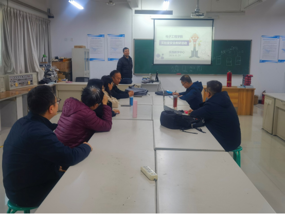 11月29日上午,电子工程学院实践教学中心联合保卫处共同开展实验室安全专题教研活动,并开展实验室消防安全知识培训和消防器材实操演练,学校督导雒新峰老师、电子工程学院党总支书记李中、院长杨亚萍、部分士官生参加了此次教研活动。