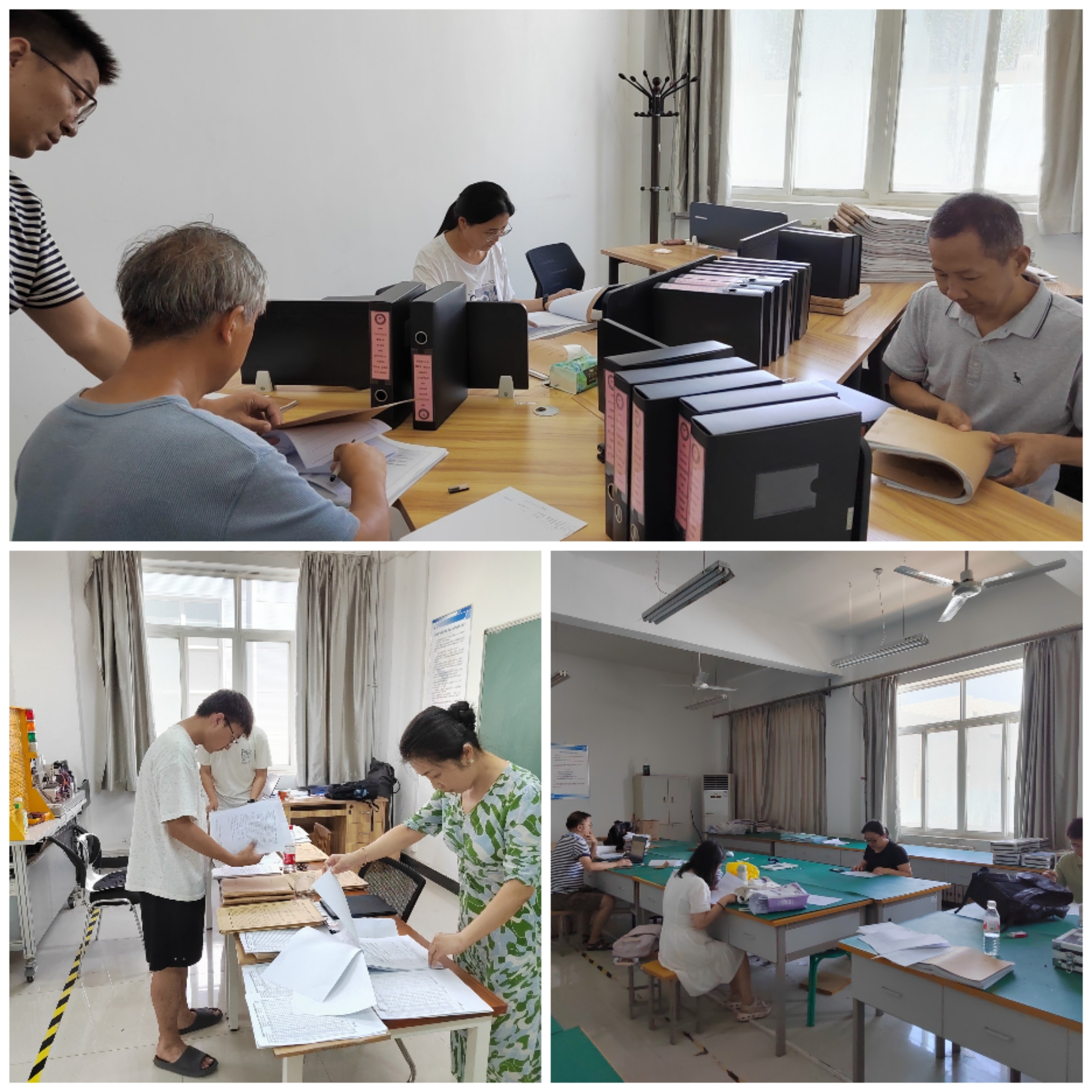 本次检查工作,是在前期全院教师开展课程资料自查的基础上组织实施的,目的在于找不足、找漏洞,进一步提高迎接审核评估资料准备工作的质量。此次检查工作,学院组织了二级督导、教研室主任、专业负责人、骨干教师共22人参与检查。按照人员所属专业进行小组分工,针对近三年的试卷、毕业设计、实训报告、实验报告资料开展集中检查。针对检查中发现的问题,学院会形成专项整改清单,要求相关教师限期整改。