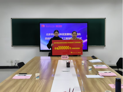 仪式上,北京华清远见科技发展有限公司向我校捐赠价值30万元的实验设备,校企双方共同签署了捐赠协议。
